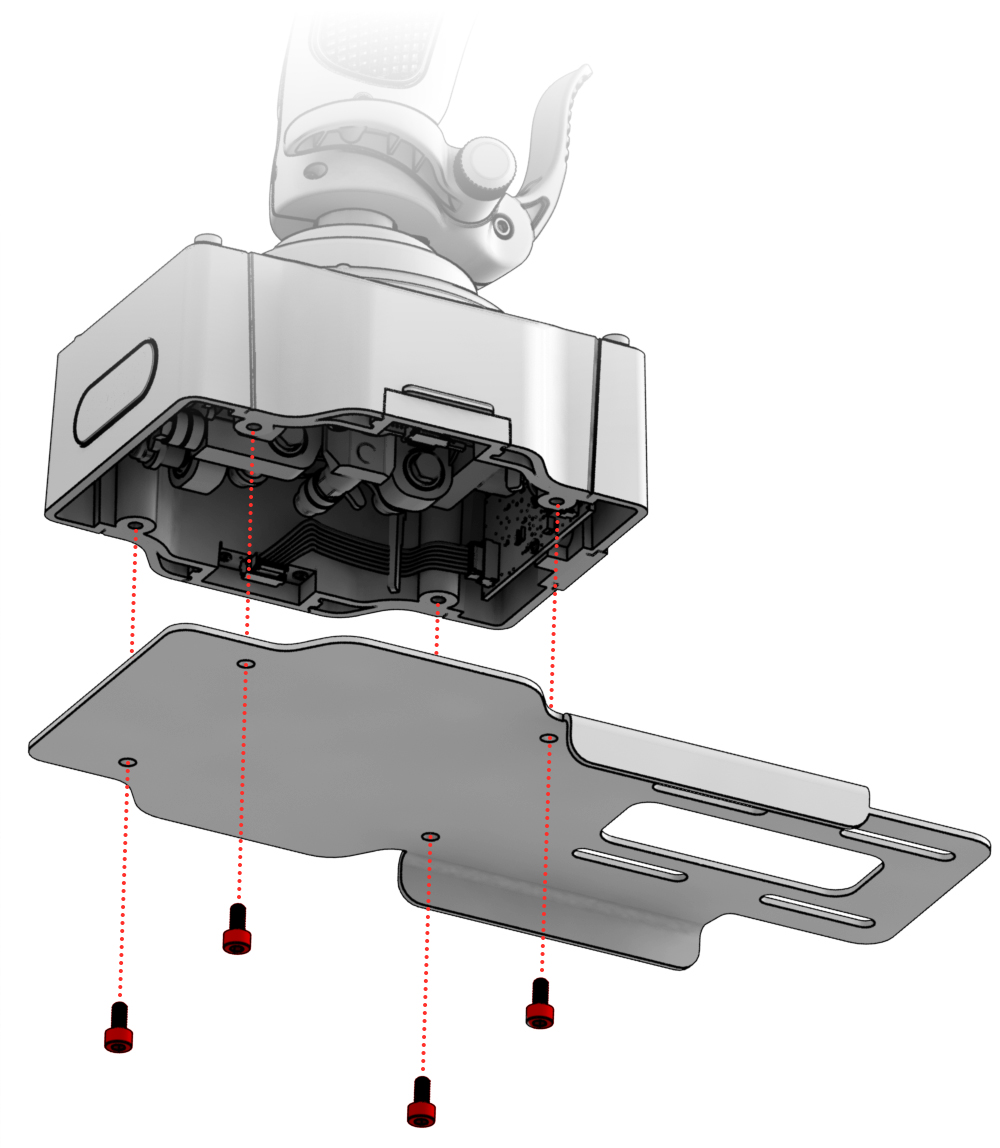 1. Remove the base plate by unscrewing the 4 screws using a Phillips screwdriver.