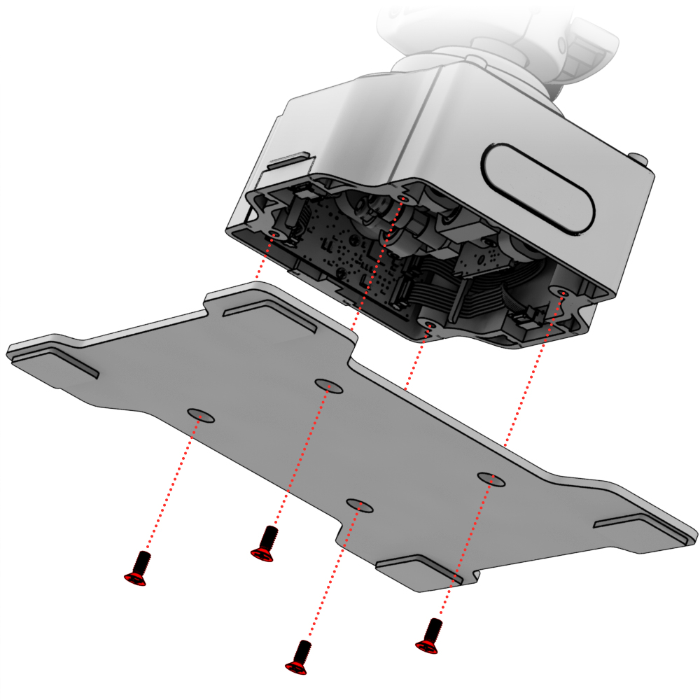 3. Attach the bracket to the plate using the M5x12 bolts and nuts.