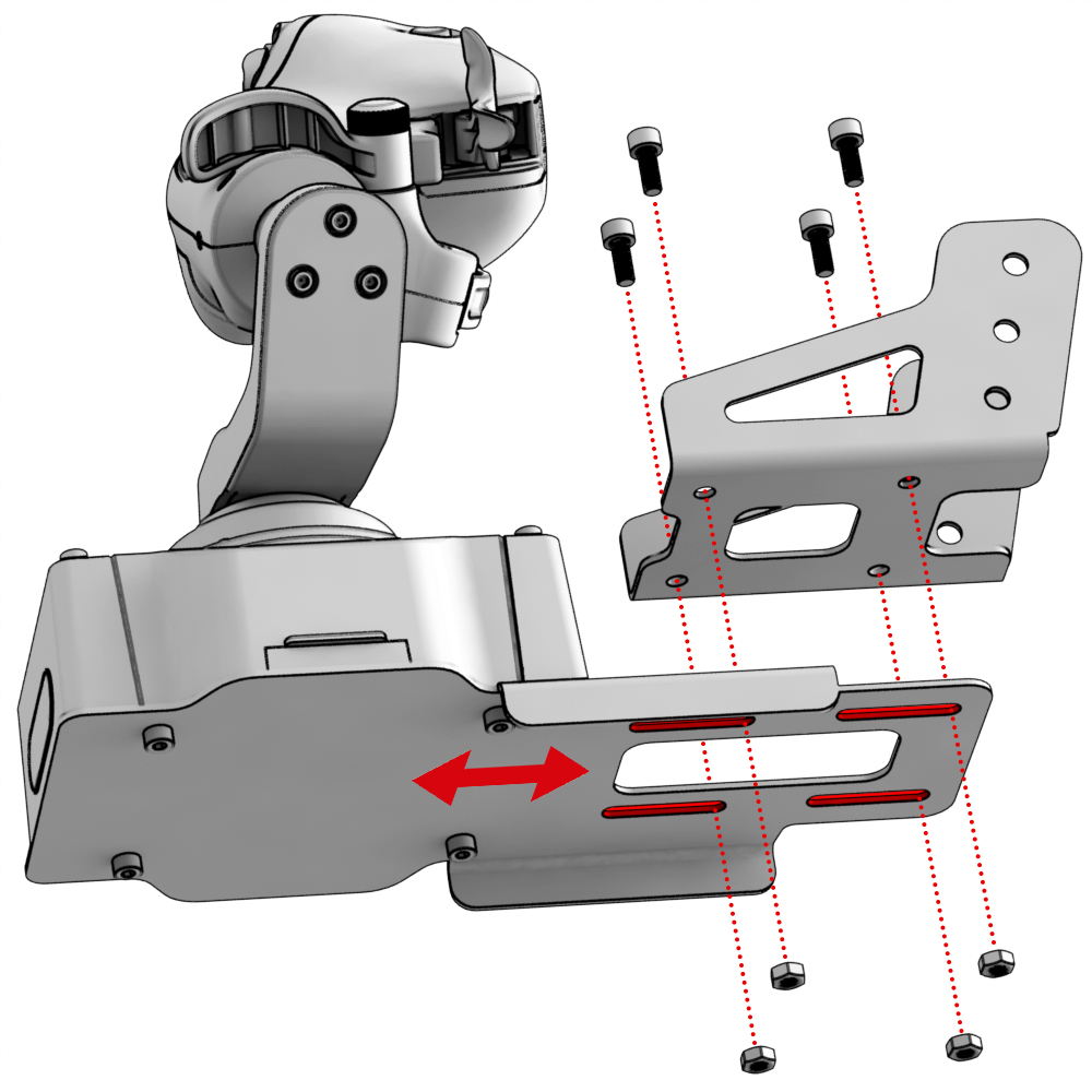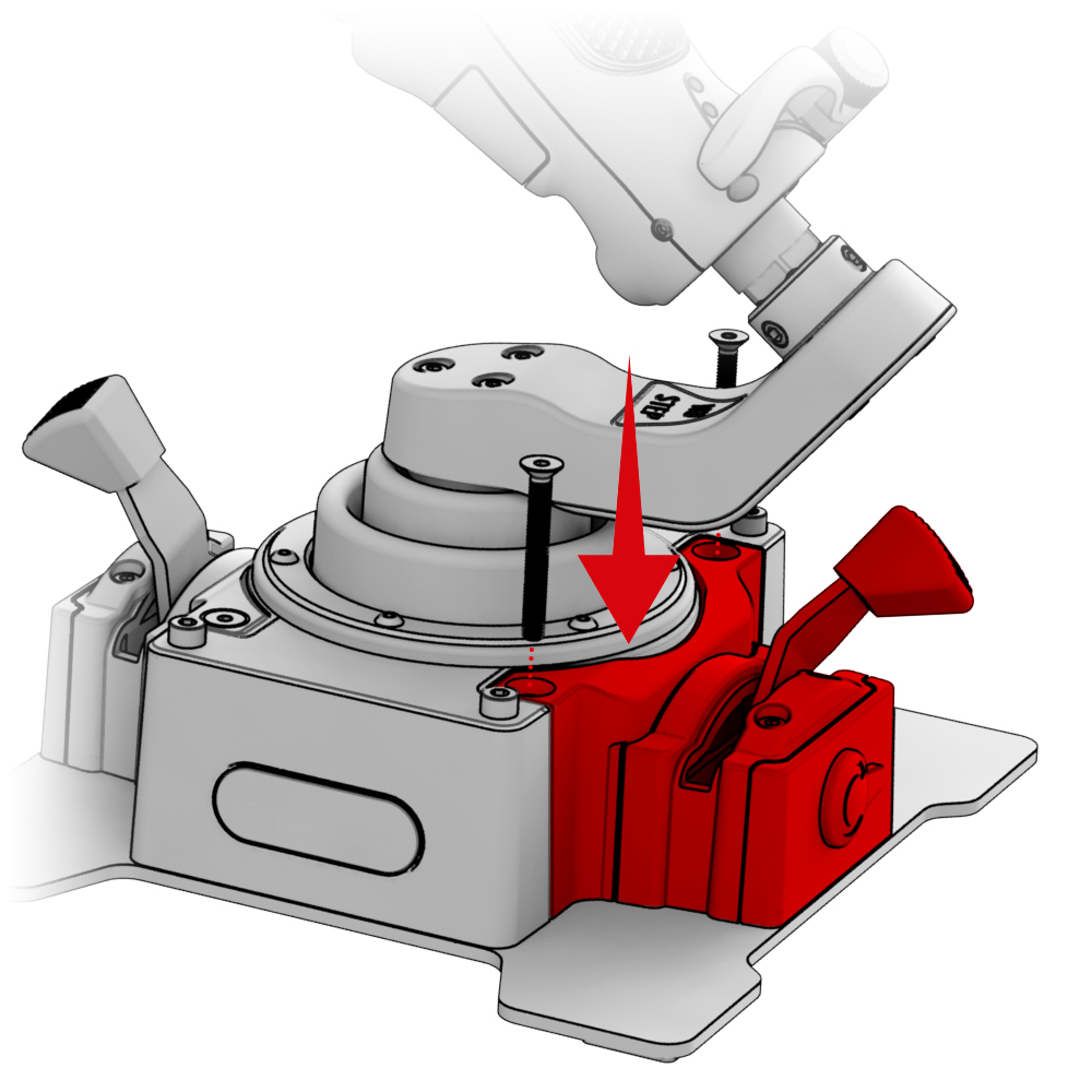 2. Install the base on the bracket plate and secure it with the screws that come with Desk Mount Adapter - CDT-AEROMAX Flightstick.