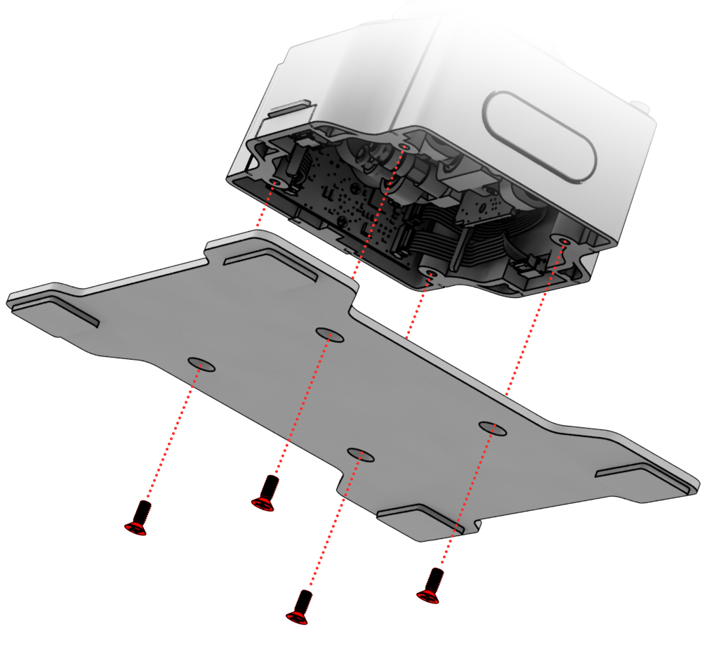 1. Снимите опорную пластину выкрутив четыре винта крестовой отвёрткой.