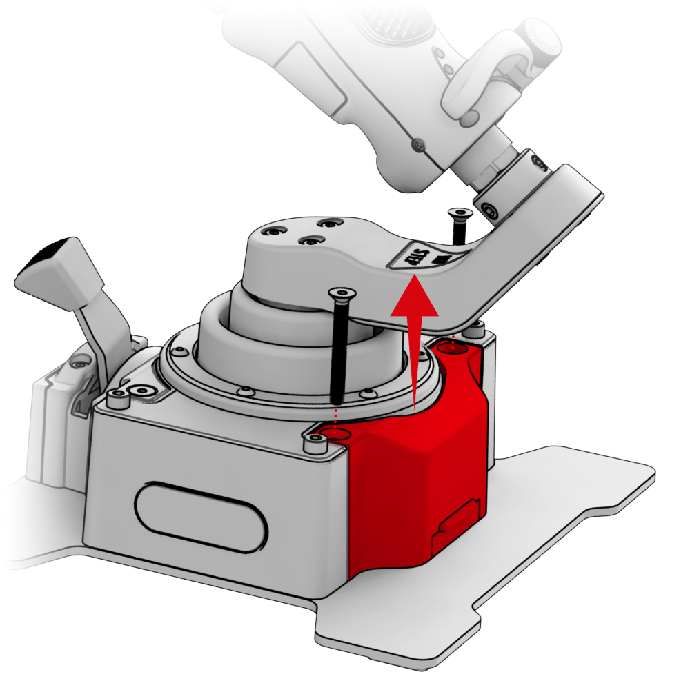 2. Установите базу на консоль и зафиксируйте винтами из комплекта Desk Mount Adapter - CDT-AEROMAX Flightstick.