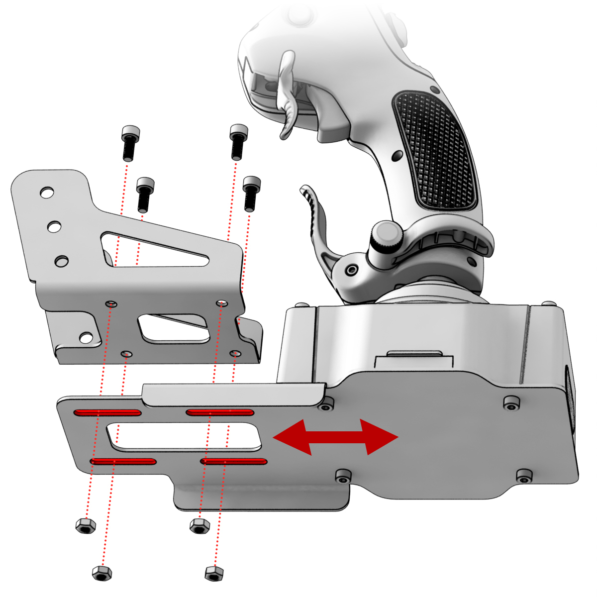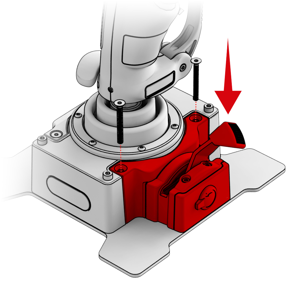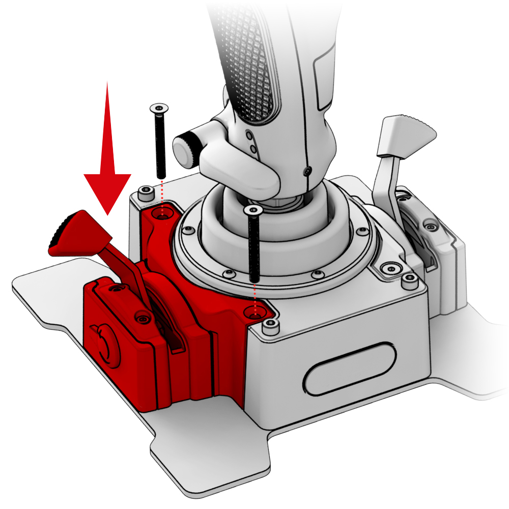 2. Установите базу на консоль и зафиксируйте винтами из комплекта Desk Mount Adapter - CDT-AEROMAX Flightstick.