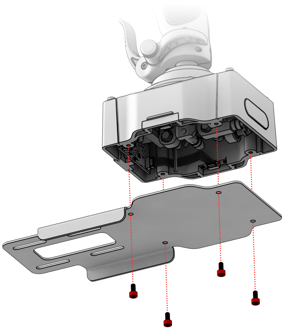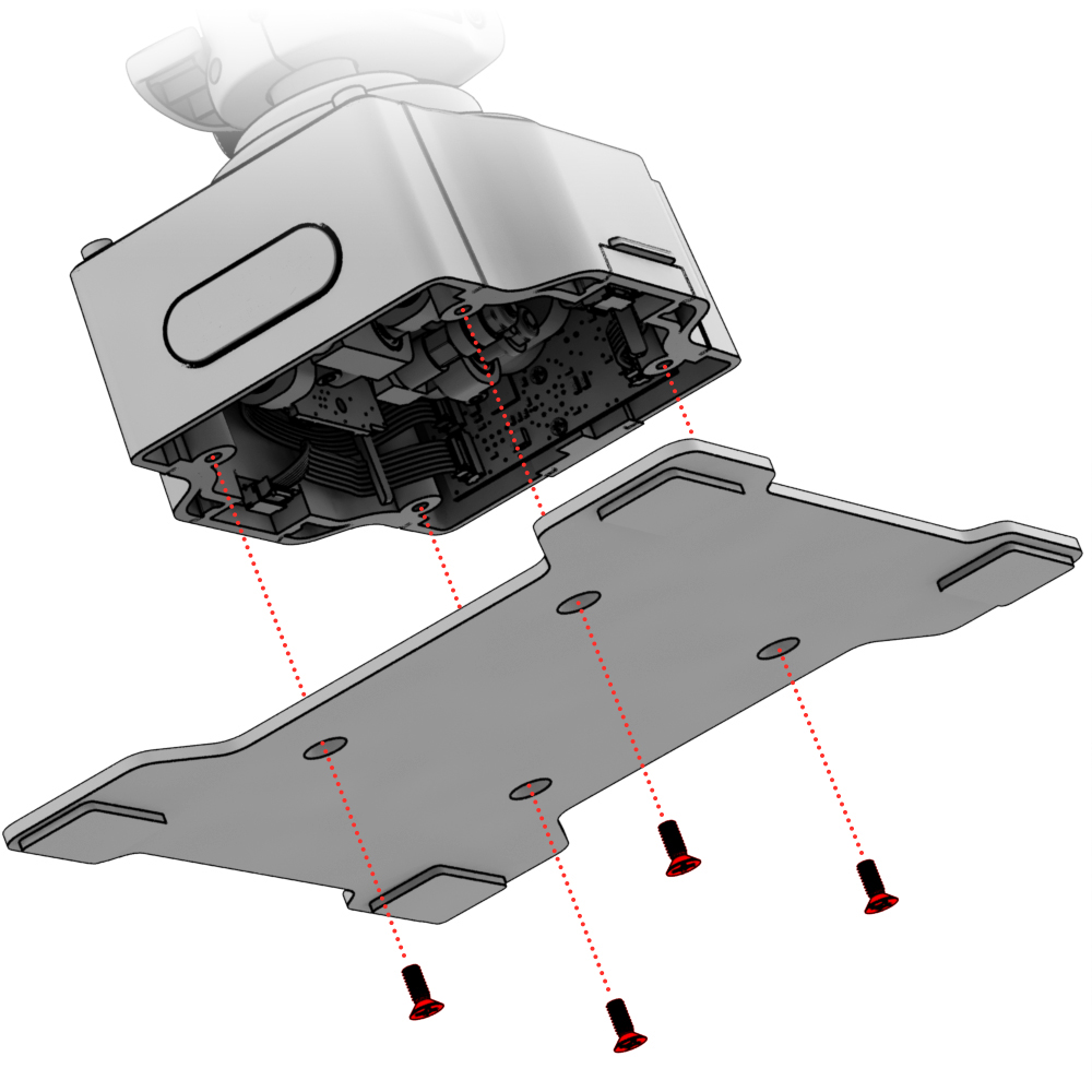 1. Снимите опорную пластину выкрутив четыре винта крестовой отвёрткой.