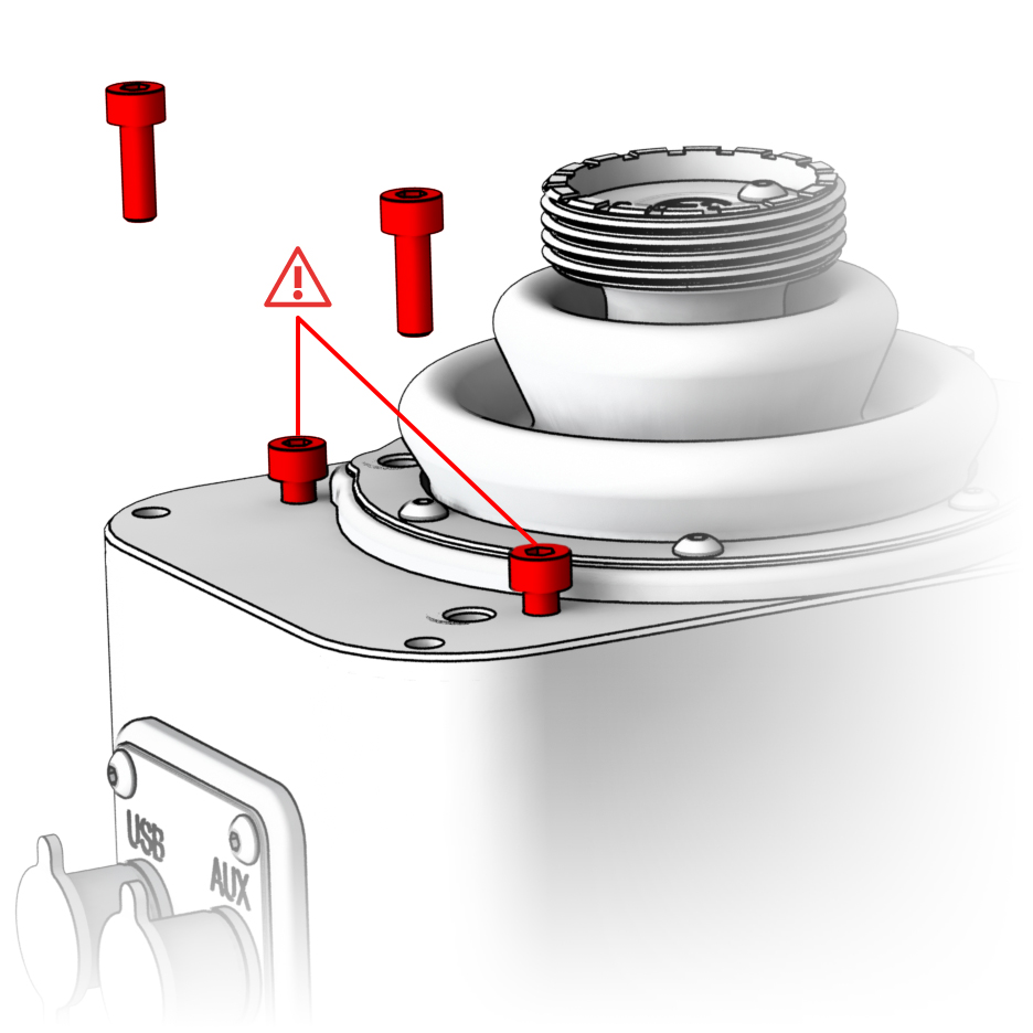 3. Выкрутите на верхней крышке базы выделенные винты: внешнюю пару полностью, внутреннюю - на 3-4 мм(!).