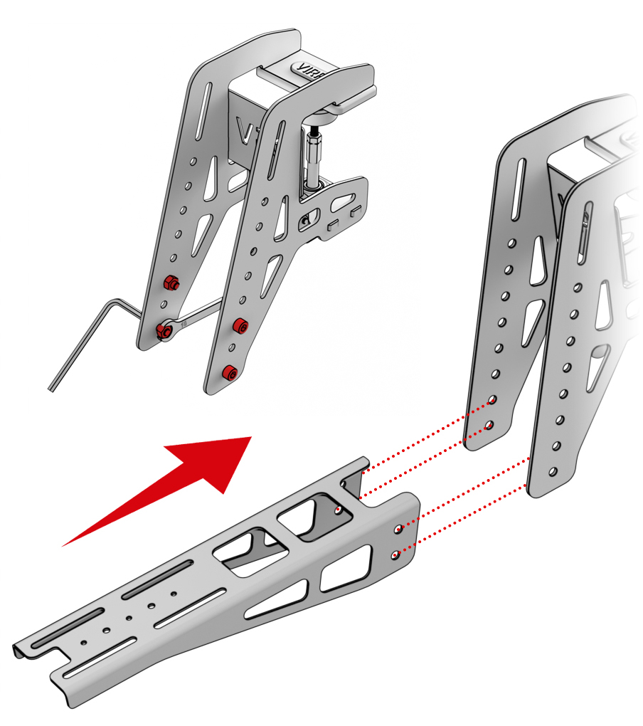 1. 从支架上拧下标注的螺丝和螺母,将适配器调至所需高度。